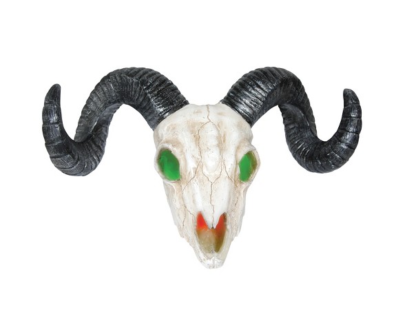 Description Ram Skull 15 Inch Light up. From a taxidermy shop to a haunted mansion, no matter what you are turning your house into, this light up animal skull prop is the perfect touch to make your Halloween decor extra spooky. The skull with horns is made from molded plastic and glows with green light, as if the skull is haunted. The included LED light is hidden inside the skull and requires 3 AG13 watch batteries. Measures 15 inches from the top of the horns to the bottom of the skull. Batteries not included.Dimensions (Overall): 16 inches (H) x 6 inches (W) x 16 inches (D)Indoor/Outdoor: IndoorMaterial: PlasticBattery: 3 AG3/LR41 Alkaline, Required, includedLED Light3 AG13 Batteries Not Included15 Inches Estimated shipping dimensions: 16.0INCH X 6.0INCH X 16.0INCH DPCI : 240-20-0901 UPC : 762543451472 TCIN : 52618993 Estimated shippimg weight: 2.0POUND