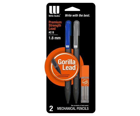 Description Give your everyday writing a contemporary and cool look with this Pencil 2 ea No. 2 1.3mm from Write Dudes. The medium HB2 lead makes it perfect for your college and school note taking. Featuring two mechanical pencils that is sure to last you through the week.Suggested Age: 10 YearsFeatures: Eraser, pocket clipPackage Quantity: 2Lead Type: No. 2Point size: 1.3mmMaterial: PlasticPremium strength leadSmart advance automatic lead system2 mechanical pencils Estimated shipping dimensions: 3.9INCH X 0.5INCH X 7.4INCH DPCI : 081-02-1680 UPC : 072348148683 TCIN : 16805766 Estimated shippimg weight: 0.1POUND