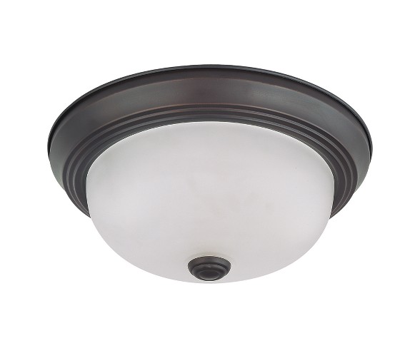 Description Combining a classic mahogany bronze finish and posh styling, the green matters 2-light ceiling mahogany bronze fluorescent flush mount beautifully highlights the charm of your home. A versatile white glass shade complements the dark finish and provides even, subdued light throughout your room. This energy star qualified fixture is a perfect choice for bedrooms, hallways, kitchens and more.Includes: 1 ceiling light fixture, 1 CFL bulbDimensions (Overall): 4.88 inches (H) x 11.38 inches (W) x 11.38 inches (D)Weight: .42 poundsBulb Base Size: Twist-lock bi-pin base GU24Lighting Shade Material: GlassLighting Body Material: MetalAssembly Details: No assembly requiredNumber of Light Bulb Sockets: 2Cord Covering: CordlessCertifications: UL ListedRequires Hardwired Installation: YesLighting Switch Type: No switch on fixture, requires hardwiringNumber of Lighting Shades: 1Light settings: 1-way (on off)Maximum Light Bulb Wattage: 13 wattsCalifornia Title 20 compliance: Not subjected to CA Title 20Warranty: 1 year limited warranty. To obtain a copy of the manufacturer's or supplier's warranty for this item prior to purchasing the item, please call Target Guest Services at 1-800-591-3869Energy Star qualified to meet or exceed federal guidelines for energy efficiency for year-round energy and money savingsMahogany bronze finish offers a rich, elegant lookEasy installation instructions, hardware and template enclosed for convenient setupUses two 13-Watt max fluorescent bulbs (sold separately) Estimated shipping dimensions: 5.25INCH X 11.75INCH X 11.75INCH DPCI : 074-06-4905 UPC : 887958489626 TCIN : 53337782 Estimated shippimg weight: 3.41POUND