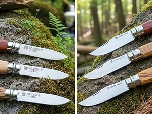 This knife appears to be just as good as an Opinel, the blade is thin, sharp and slightly flexible, in contrast to a Victorinox blade which is more rigid. It has a rotating collar, similar to an Opinel. It is nice to see such good quality knives at reasonable prices.