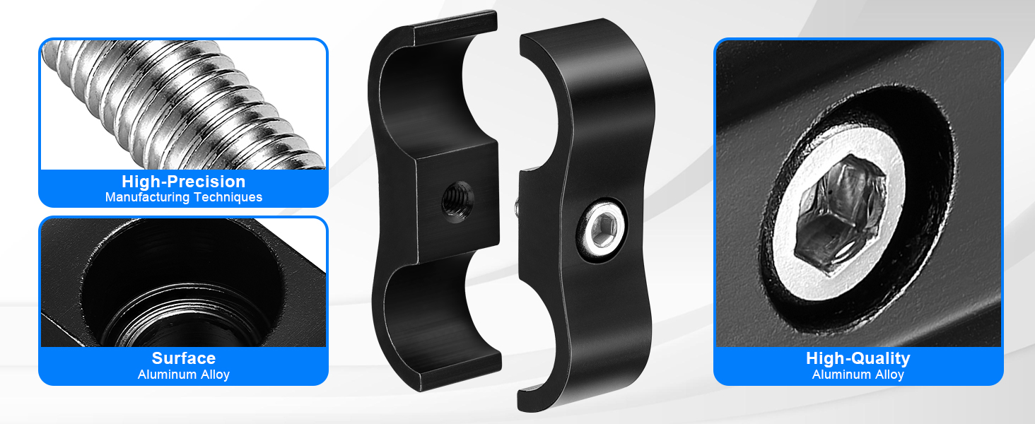 The -6AN Hose Separator Clamp is a set of four CNC billet aluminum clamps designed to securely separate and organize 3/8-inch fuel, oil, brake, water, and gas lines. Featuring an eco-friendly, reusable design, these anodized black clamps offer easy installation with standard garage tools and come with a variety of size and color options to perfectly fit your project needs.