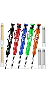 The Hiboom 5 Pcs Mechanical Carpenter Pencil set combines professional-grade 2.8mm leads with a patented needle-nose tip and built-in sharpener, housed in five vibrant, ergonomic holders. Designed for carpenters and woodworkers, it offers durable, precise marking on wood, metal, and paper, with color-coded refills to streamline your workflow and elevate your craftsmanship.