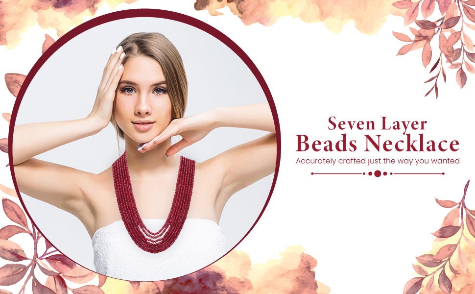 The Ratnavali Jewels Seven Layer Multi-Colour Necklace features high-quality, natural polished stones including real ruby, emerald, sapphire, and onyx. Measuring 11 inches in length, this lightweight necklace is designed for comfort and style, making it perfect for women and girls who want to add a touch of elegance to their wardrobe. Each piece is unique, and it comes beautifully packaged in a complimentary gift box.