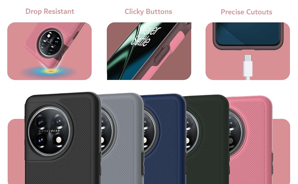 The TUDIA DualShield Grip for OnePlus 11 is a military-grade protective case designed for 2023 models. It features dual-layer shockproof technology, a non-slip grip, and raised edges for enhanced camera and screen protection, all while maintaining a slim profile.