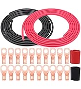 Great kit. Mine came with 8 copper lugs and 8 pieces of marine heat shrink as well as a good length of both wires and the two terminals with all bolts, nuts and washers. My only complaint is that the bolts (studs) must be 8 mm and not 5/16-18 as I tried to use some stainless 5/16-18 nylok nuts with them and the threads don't match. Other than that this is a great deal.