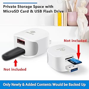 If only I had a nickel for everytime a family members says "My phone is full and I don't know what to do with my photos!" This is the answer. Very compact and functional as it will backup both photos and phone contacts. The required app (iStore Pro) did not seem intuitive at first but I got more comfortable with it after a couple of uses. There is a setting option where I chose not to back up my contacts.The provided mini user guide is above average; it is a very small booklet but has nice sized fonts and diagrams and even has a table of contents up front. The customer support email address is provided in the very first section.Probably the best feature is that the app "knows" which photo files it has already backed up so that it only backs up new photos added since the last time. So, after the initial backup the others process very quickly. It comes with a 256 GB micro SD card, but will take up to a 512 GB card. According to my calculations that means you can store nearly 50,000 average size phone photos! Love it!