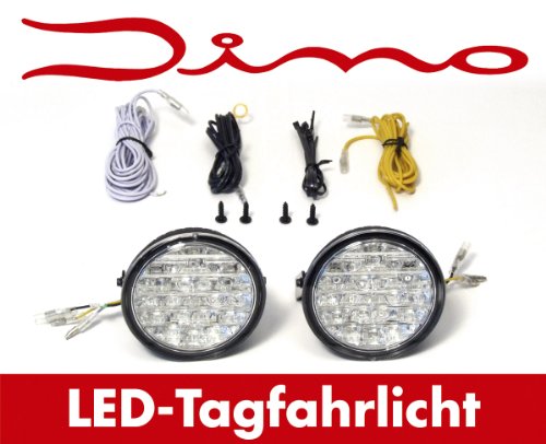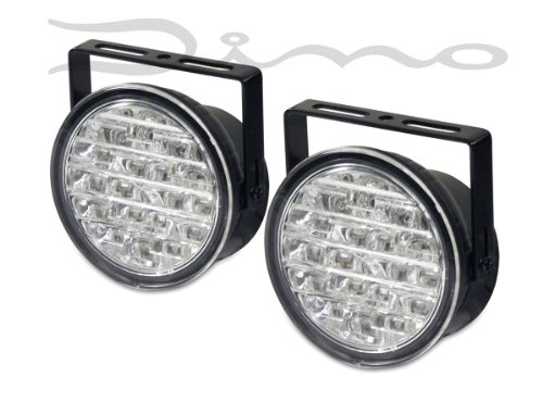 Highlights: ·18 LEDs per light ·With EU approval (ECE R87) Features: ·Switches on and off automatically ·ECE R87 tested ·No registration or ABE necessary ·Plastic housing ·Retainer clip with adjustable angle Technical Specifications: Construction: Rund · Content: 1 Pair · Depth: 36 mm · Dimensions: (Ø x D) 90 mm x 36 mm · Light type: 18 LEDs · Operating voltage: 12 V Description: Daytime driving lights make sure that you can always see other drivers and that other drivers can always see you you - especially in dark alleyways and built-up areas or bad weather conditions. This greatly increases your own safety as well as that of your passengers. The daytime driving lights turn on when you start the engine as they are connected to terminal 15 (ignition).