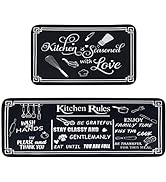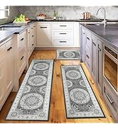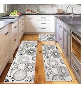 The Voanos Black and White Kitchen Rugs set includes two microfiber mats (17"x30" and 17"x47") featuring a plush 0.3" thickness for anti-fatigue comfort. Designed with a non-slip backing, these durable mats stay securely in place to prevent accidents. Their fast-absorbing, washable microfiber surface ensures easy cleanup, making them perfect for multiple floor types and versatile home use.