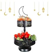 The Yoawllty Ramadan Decorations 2-tier serving tray is a gold-finished iron cake stand designed specifically for Ramadan and Eid celebrations. Measuring 20x20x38.6 cm and weighing 680g, it features a moon-shaped motif that adds a festive touch while offering sturdy, easy-to-clean tiers for displaying desserts and treats. Lightweight and easy to assemble, it doubles as a stylish gift and a versatile party centerpiece.