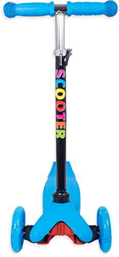 Our Scooter 3?wheels is ideal for first time use and for easy learning. Suitable for children from the age of 3, it is intuitive, light and durable. Strong and silent wheels, which are inlaid with LED for use fun and your child is visible, even during the day. Soft touch handles and ergonomically designed for the comfort of the child. Handle can be adjusted to 3?different heights depending on the size of the child. Plastic bottom tray for reducing the impact on the ankles. Its width promotes stability of the child. Brake on the rear wheel, long and covers for better braking. Clip system for easy assembly and disassembly. Scooter in conformity with the European standard EN-71.Package Contents:-1?scooterPlease note that the scooter runs according to the handlebar angle for turning in softness and security for your young child.