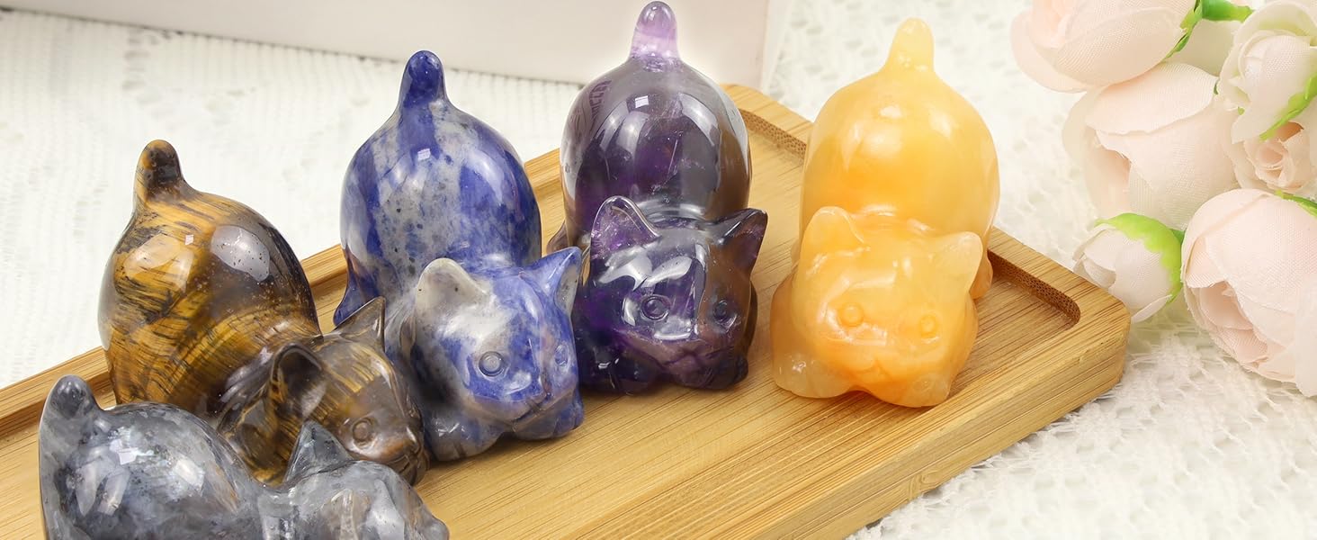 2 Black Cat Figurines Statue Sculpture Obsidian Crystals And Healing | Desertcart Ecuador