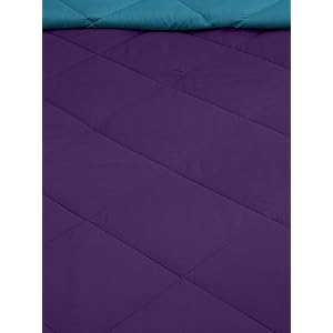 The Amazon Brand - Solimo Microfibre Reversible Comforter is a lightweight, hypoallergenic comforter designed for single beds. With a luxurious 300 GSM hollow siliconized polyester filling and a 100% microfiber shell, it offers both comfort and style. The reversible design features a stunning Deep Purple and Ocean Blue color scheme, making it a versatile addition to any bedroom. Measuring 230 cm x 150 cm, this comforter is perfect for winter nights and is machine washable for easy care.