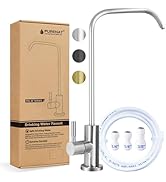 The PURENAT Drinking Water Faucet features a long thread stem for thick countertops up to 6.15cm, lead-free brushed stainless steel construction for safe drinking water, and a 360° swivel gooseneck with 90° handle for versatile water control. It includes push-connect fittings compatible with various RO systems, a durable ceramic valve tested for half a million cycles, and is designed for easy tool-free installation. This faucet combines premium durability, safety, and sleek design, making it a top choice for modern kitchens.