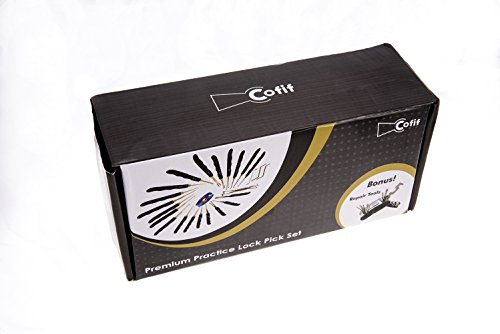 Cofif Premium Lock Pick Set - Picking Like a Pro! Have you ever been locked out of your house and paid a crazy amount of money for a locksmith to open the door? Or, getting curious about the whole art of lock picking? Look no further! Challenge yourself with the best selling Cofif Lock Picking Set! It has everything you need to become a master locksmith in no time! Once you open the beautiful black coloured box, you will find, - 24 piece lock pick set - 20 picks, 3 Tension wrenches, 1 key extractor This all-in-one lock picking set is comprehensive enough to tackle even the hard to open locks. It is recommended for professionals as well as the newbie. As you develop the skill, you can easily find the preferred tools for each and every lock. - Clear practice padlock with two keys You can see exactly how the pins move up, down and how the mechanism works. Extremely helpful for beginners. - A beautiful leather pouch Helps to keep everything in place and makes your tools portable. Don't settle for the cheap stuff - get something that will last a lifetime. Cofif lock picking tools are crafted using the highest quality spring steel to provide maximum durability and strength. They will not break or get lost in any of the locks that you're trying to pick. Your satisfaction is our number one priority. So with every Cofif locksmith tool set we have bundled a 13-in-1 pocket- sized portable repair tool absolutely for FREE. It is made of high-quality carbon steel and helps to maintain bicycles and household gadgets easily and effortlessly. Once your order is shipped, we will send you an awesome e-guide "Popping Locks in a Jiffy" to get you started and take you from beginner to an advanced locksmith. So why wait? Choose us today! Your purchase is backed by 100% MONEY BACK GUARANTEE!