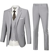 This Men's 3 Piece Slim Fit Suit Set features a 2-button blazer, 4-button V-neck vest, and flat-front pants with adjustable waistbands, crafted from premium textured fabric. Designed for weddings, business, and festive occasions, it offers a tailored look with customizable sizing options and versatile styling for both formal and casual wear.