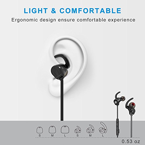 The MagicBuds One Wireless Sports Headphones connect your devices via the latest Bluetooth V4.1 with aptX Codec and A2DP tech, streams music in high quality for your wireless workout freedom! Features the magnetic ear buds keep the MagicBuds One tangle-free and easily coil up for compact portability. Premium Audio Performance Build in CSR Bluetooth V4.1 Chips, the latest Bluetooth V4.1 with aptX Codec and A2DP tech, offers a faster and more energy efficient connection, streams stereo CD sound quality of wireless music with no delay! Light weight 0.53 ounce only, your perfect wireless companion for sports/ exercise/ workout/ gym, like running/ jogging/ cycling/ riding/ skating! Noise Isolation for block constant, low frequency outside noise. Magnetic Earbuds, Comfortable-Fit Built Magnetic in earbuds keep it tangle-free and easily coil up for compact portability. Flexible cable provides a comfortable fit for all-day wear, 3 size options of eartip and secure-fit wingtip offer you personalized comfort and stability. In-line Mic, Remote Controls In-line microphone for hands-free calls on phone/ PC Skype calls and VOIP, full Siri compatibility. Remote buttons for Answer/End /Decline/Mute/Redial phone calls, Play/Pause/Previous/Next music and Volume +/- Sweatproof, Long Battery Life Sweat Resistant against heavy sweat, you can enjoy wireless listening throughout your day while sports. Built-in rechargeable Lithium-Ion offers 5 hrs of playtime, and it takes only 1.5 hours to get fully charged. Power meter displaying on iPhone, iPod, iPad, iPad mini, MacBook or iMac. Fully Compatible Compatible with all Bluetooth enabled Apple Watches / GALAXY Gear / SmartWatch, iOS / Android / Samsung SmartPhones, iPod, iPad, iPad mini / Tablets, MacBook / Laptops, iMac and other Bluetooth enabled devices.
