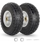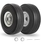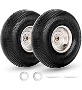 Solid hand truck wheels that are never flat. There is nothing worse than a handtruck with flat tires and in my experience, the pneumatic tires normally go flat and are often tubeless creating a useless situation. These tires have been perfect and make my handtruck extremely reliable. I can even use it to move large rocks around the yard without the fear of a sharp rock causing an air leakage. Give these a try and you won't regret it!