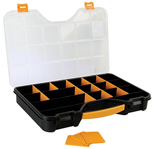 The Perel OMR24 is a 24-inch tool organizer featuring 18 adjustable compartments plus 2 extra slots, designed for efficient and customizable storage. Measuring 510 x 347 x 71 mm and crafted from durable plastic, it offers a sturdy, compact solution ideal for professionals seeking to streamline their workspace. Backed by Perel’s 36 years of industry expertise, this organizer combines practical design with lasting quality.