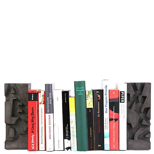 'A to Z bookends are made of special concrete Model: ABCD Imagine your books will of the letters supported - this is exactly what is the the base of the bookends a - z of Jochen The Grain. A lavish casting with special concrete you'll get each of the six Book Ends its unique character. You can choose from one or up to six supports, or the whole alphabet, purchased separately. You will receive supports in high-quality and sturdy gift box. With a weight of approx. 2.5 kg and a size of 215 mm x 70 mm x 70 mm Lassensich not just books and magazines safe place. Also Anthologien, Lexika and heavy collections are height adjustable between give you reliable place. The supports are mounted on a stainless steel plate with rubberised base, which ensures stability and shading the end of the lens to protect the surfaces in the process. The high-quality support include your literature and meet even in appearance all requirements of a modern added organisation system components. Material: Special stainless steel concrete, foam rubber