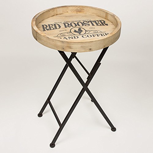 - Natural Wood Finish with Deep Edge and Printed Inscription "Rise and Shine with Red Rooster Brand Coffee"