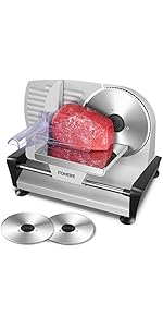 The FOHERE Electric Meat Slicer features a robust 200W motor and dual 19cm removable stainless steel blades (serrated and smooth) for versatile slicing of meats, cheeses, breads, and more. With adjustable thickness control from 0 to 15mm, it ensures uniform cuts tailored to your culinary needs. Safety is prioritized with non-slip suction cups, a food pusher, and an internal on/off switch, making it ideal for confident home use. Compact yet powerful, this slicer transforms everyday meal prep into a gourmet experience.