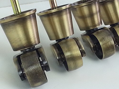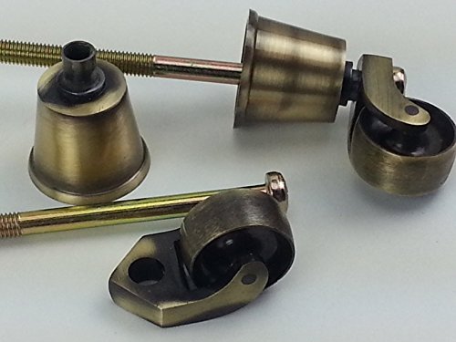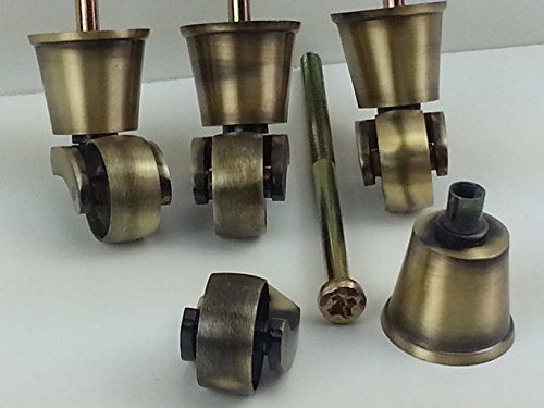 4x ANTIQUE BRASS CASTOR SOCKET, WHEEL & 130mm BOLT FOR FURNITURE BEDS, SOFAS CHAIRS STOOLS ECT - RJB_AT