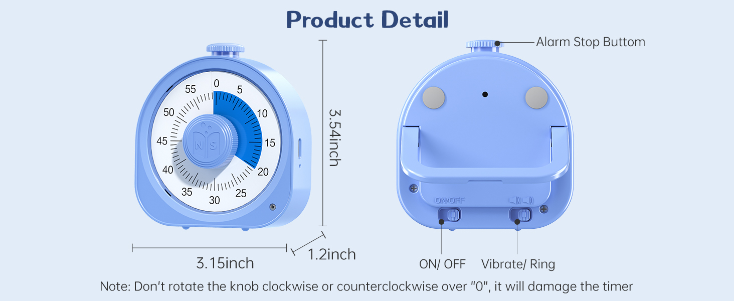 ZZWS Visual Timer for Kids- Rechargeable Toddler Timer Visual Countdown Timers - ADHD Clock Pomodoro Timer- 60 Minute Visual Timer Kids Adults Time Management Tool for Classroom Office Library (Blue)