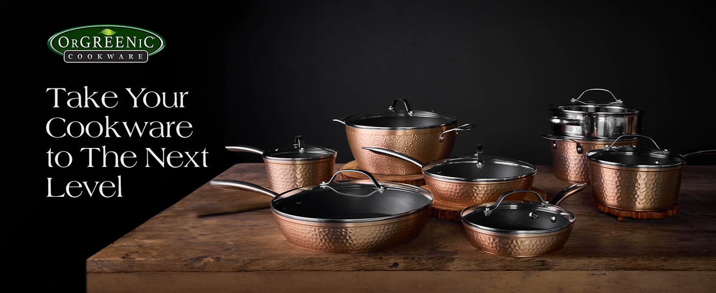 OrgreenicRose Hammered Cookware Collection - 10 Piece Set with Lids - Non-Stick Ceramic for Even Heating | Safe for Dishwasher, Oven & StoveTop