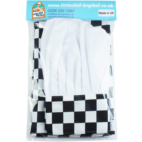 Children's chef hats and cooking aprons. Made from durable poly/cotton mix. Ideal for all kitchens, schools, cookery clubs and home use. Made in the UK exclusively for little chef big chef. Gift bagged!