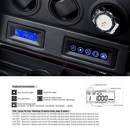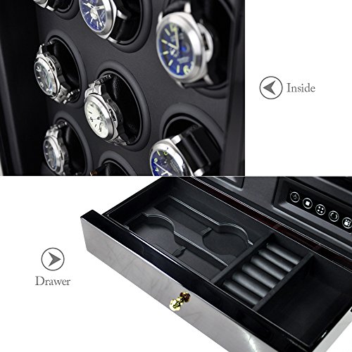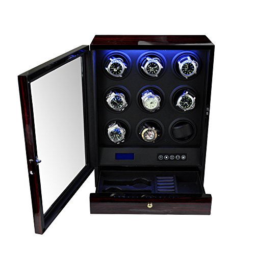 Smart Automatic Watch winder for 4-6-9 wathces, Deluxe reel mechanical winder box, Watch display show case, with LCD touch scrren (9 rotors-Ebony)