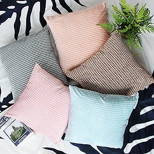 UhomyFall Soft Velvet Decorative Throw Pillow Covers Gray Grey and White Plaid Farmhouse Square Cushion Pillowcase Covers for Sofa Car Bed Couch,2 Pack,18 x 18 inches(45 cm)