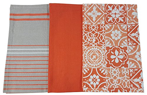 This Morocco tile assorted 3pk set of kitchen towels have each been beautifully designed to colour co-ordinate each other. Within this 3pk of towels, there is one with tiles each with there own pattern inside, one with the striped pattern and one plain with no pattern. All of which are 100% cotton
