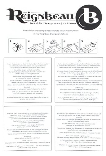 Shine bright like a diamond! The perfect glamorous touch to your festival or evening outfit, your tattoo will also looks fantastic on tanned skin whilst holidaying on the beach. Layer them under cuffs or chain jewellery for a more discreet 'flash' of gold during the day or, for a look that all your friends are sure to notice, use your tattoos on your nails as well. Get creative and match your manicure to your body art! Applied in minutes, and easy to remove, your temporary tattoo will last for 3-5 days (depending on area of application). Full instructions on application and removal are included with the product. These metallic glow in the dark temporary tattoos are perfect for day and night. The edges of the bracelets on these design will glow brightly around the edges with the lights out. No need for a blacklight!