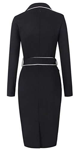 SunIfSnow Women Elegant Button Turn-down Collar Patchwork Sashes Plus Bodycon Dress L