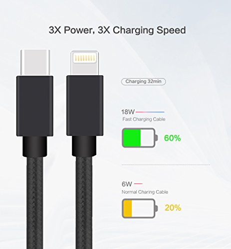 USB C to Lightning Cable Fast Charging for iPhone X/8/7/6/6s Plus/SE/5s/5, iPad, Macbook Pro, Google Pixel 2 XL, ChromeBook (2m, black)
