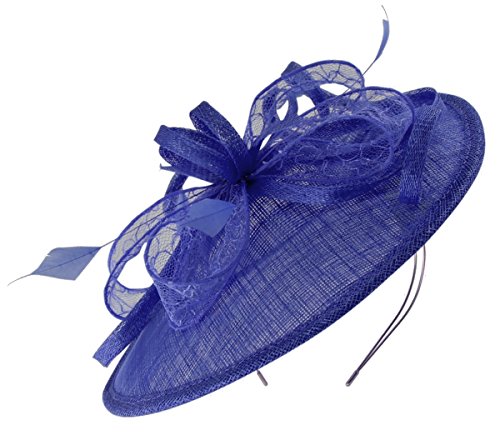 From the Max and Ellie 2018 Spring / Summer Collection, this stylish disc is made from sinamay with matching sinamay loops, patterned sinamay loops and feathers. It measures approximately 27cm across and secures to the head with a thin metal aliceband that is easy to hide under your hair.Please see our Amazon storefront for matching bags and scarves – e.g. Max and Ellie Occasion Bag.
