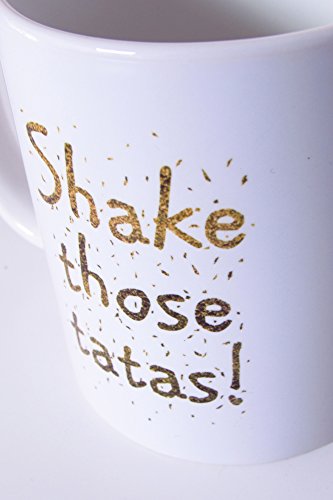 Gold glitter 'shake those tatas!' mug Great for burlesque, pole and exotic dancers Gold glitter confetti effect text