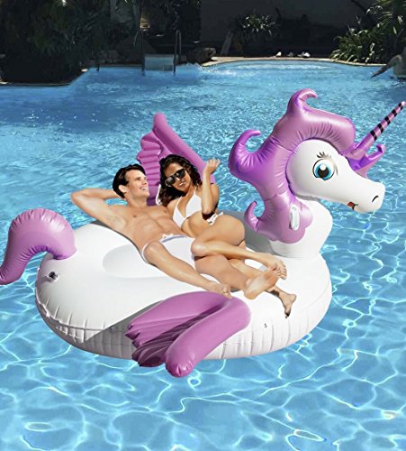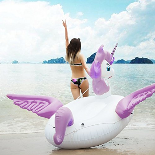 GREAT FOR TRAVEL & POOL & PARTY: Great fun with one of our huge unicorn water floats! It's a swim-line good time for kids and adult children at heart, letting you lounge, play or race with your friends at the pool, beach or lake.Pack your pool rider in the car for go-anywhere fun and make sure to bring it to your next pool party. Loves to party with the unicorn float