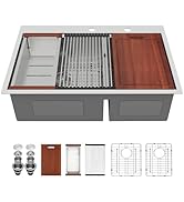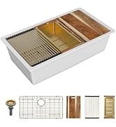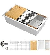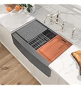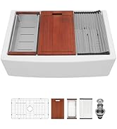 Here's a fun and engaging review ⭐⭐⭐⭐⭐ **A Farmhouse Sink Dream Come True!** Step aside, everyone, because my kitchen has a new superstar – the incredible farmhouse sink! This beauty has completely transformed my kitchen into a culinary haven. From its spacious basin to the sleek, modern design, it's everything I dreamed of and more. First off, the size is perfect. No more struggling to fit large pots and pans; this sink handles it all with grace and ease. The deep basin makes washing even the bulkiest items a breeze. And let's talk about that stunning finish – it perfectly complements my countertops and adds a touch of elegance to the whole space. What really sets this sink apart, though, is the built-in accessories. The cutting board and drying rack are not just practical but stylish too. They slide effortlessly, creating the perfect prep station right over the sink. Cleanup is a cinch, and everything looks so organized and tidy. The installation was straightforward, and it feels incredibly sturdy and well-made. Every time I walk into my kitchen, I can't help but smile at how beautiful and functional it is. If you're considering a farmhouse sink, don't hesitate – this one is a total game-changer. Five stars all the way!