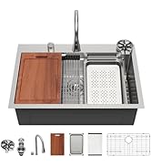 | Included Components | cutting board+colander, drain assembly+ small basin, faucet, roll up drying rack+bottom grid, waterfall kitchen sink |